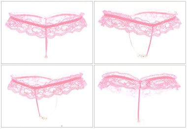 (情趣内衣)激情蕾丝开裆T裤女性低腰透明内裤蕾丝按摩开档性感丁字裤(粉色)